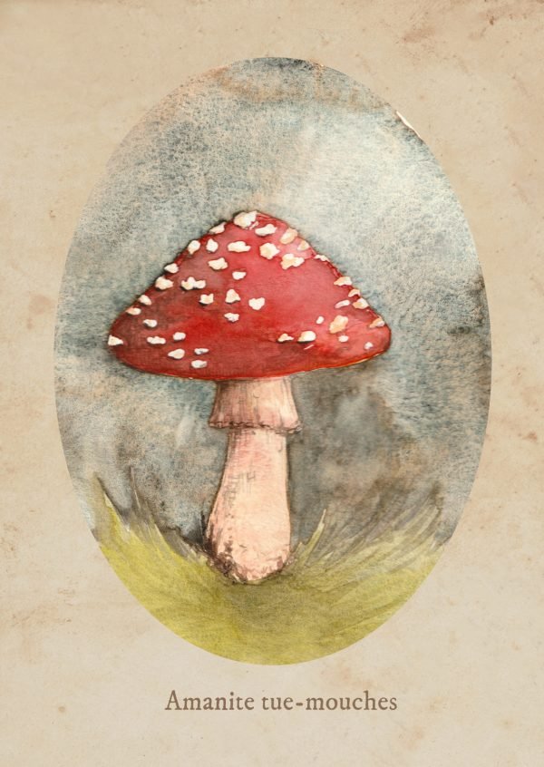 Quand mes dessins et aquarelles se transforment en planche de champignons à broder et en marque-page et carte.