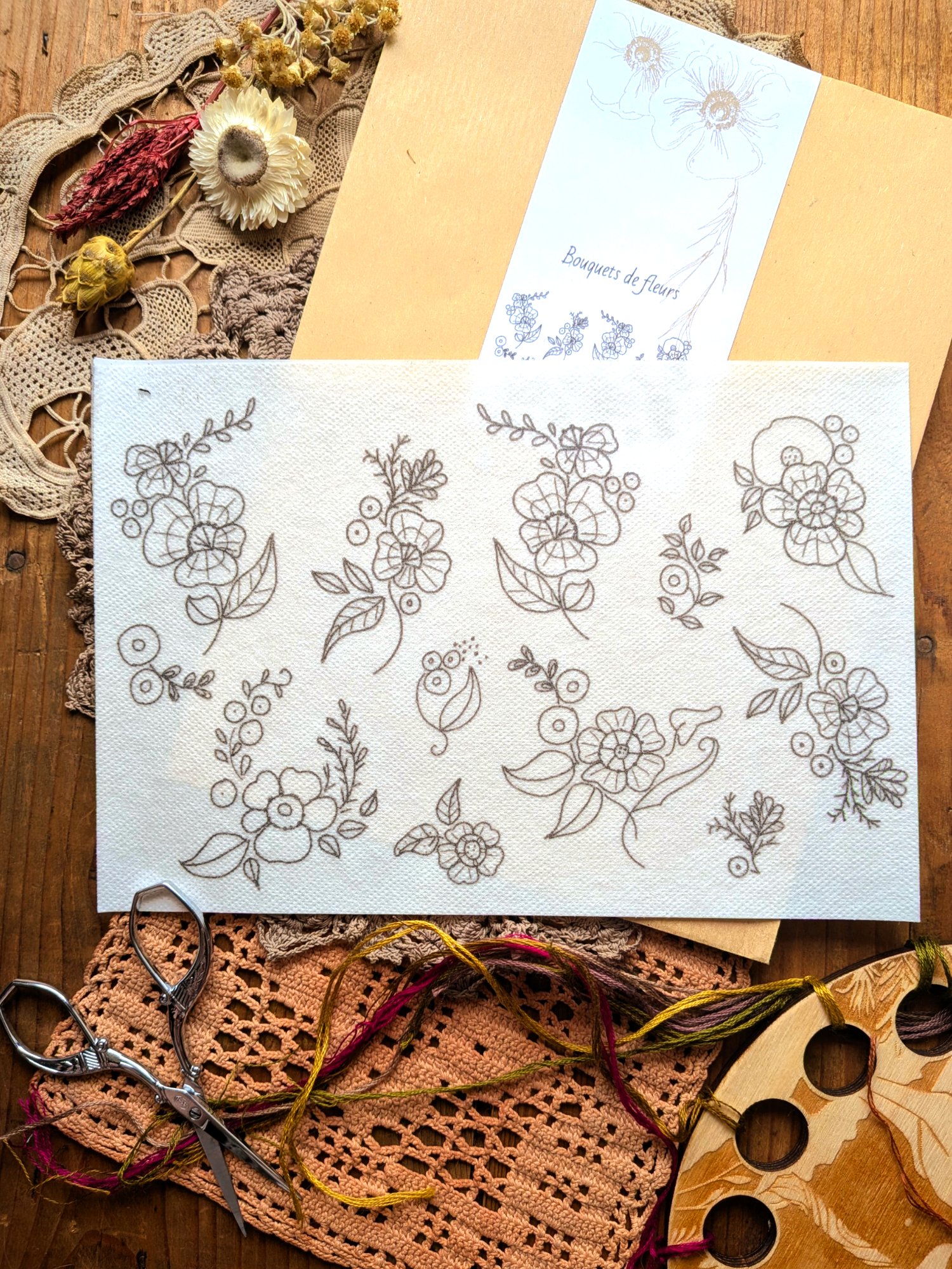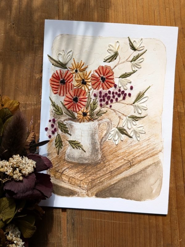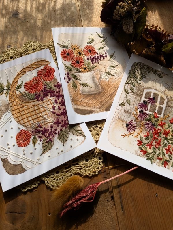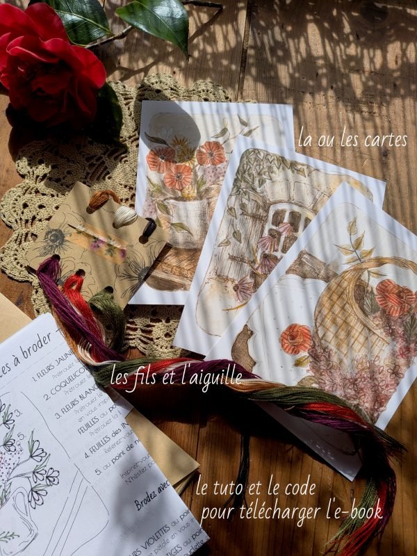Voici donc les cartes à broder « Les fleuries », la base pour broder sur papier.